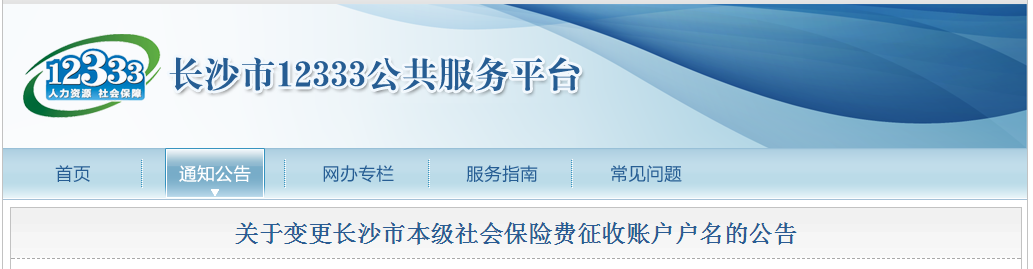 根据国务院、省、市机构改革有关精神,为确保社会保险费征收工作顺利开展,保障参保人员合法权益,自2019年5月7日起,长沙市本级开设在长沙银行丰瑞支行、文艺支行的社会保险费征收账户户名统一变更为“长沙市社会保险费征缴管理中心”,账号不变,原缴费人与社会保险费征收经办机构、银行签订的代扣代缴三方协议继续有效。变更后账户户名、账号、用途如下: