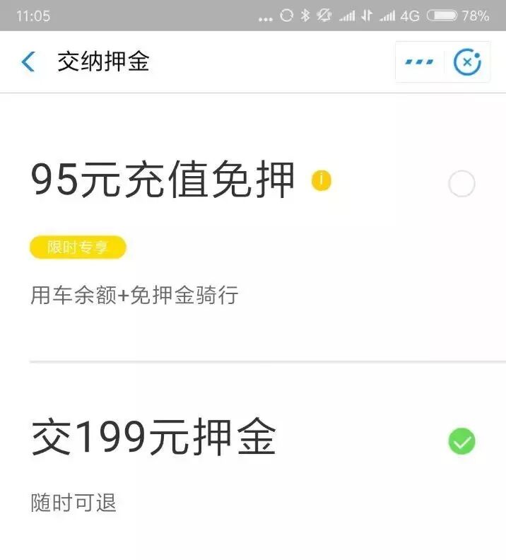 当摩拜选择收199元押金时,ofo选择和阿里合作,用芝麻信用积分免押金骑车。